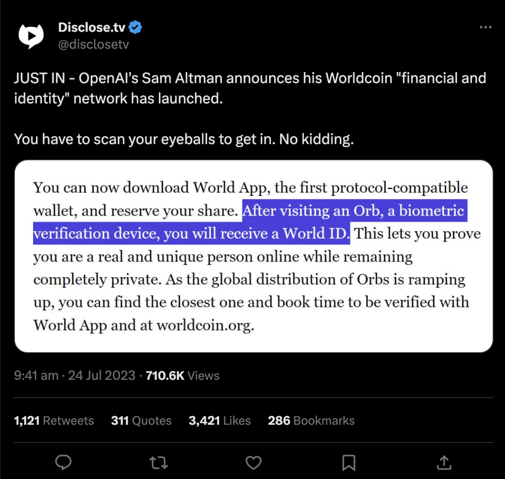 Nekoliko članova zajednice oštro je kritikovalo proces skeniranja očnih jabučica, dok su ga drugi uporedili sa “digitalnom diktaturom”. Argument privatnosti nije imao po uticaju na kripto mjenjačnice poput Binancea, koji je najavio planove za svrstavanje WLD tokena 24. jula. Ostale istaknute platforme, uključujući Huobi, KuCoin i BitMart, takođe slijede ovaj primjer.