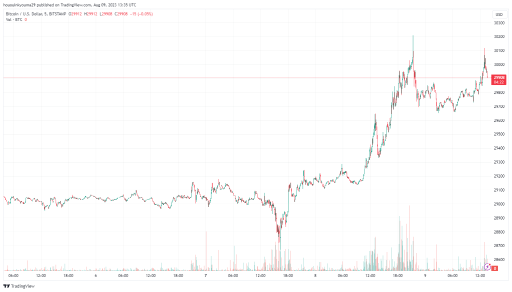 U vrijeme pisanja ovog teksta, Bitcoin se trguje oko 29.900 dolara, što je rast od 2% u protekloj sedmici.