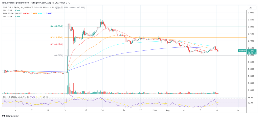 U vrijeme štampe, XRP nije bio impresioniran prijavom SEC-a i trgovao se za 0,6296 dolara.