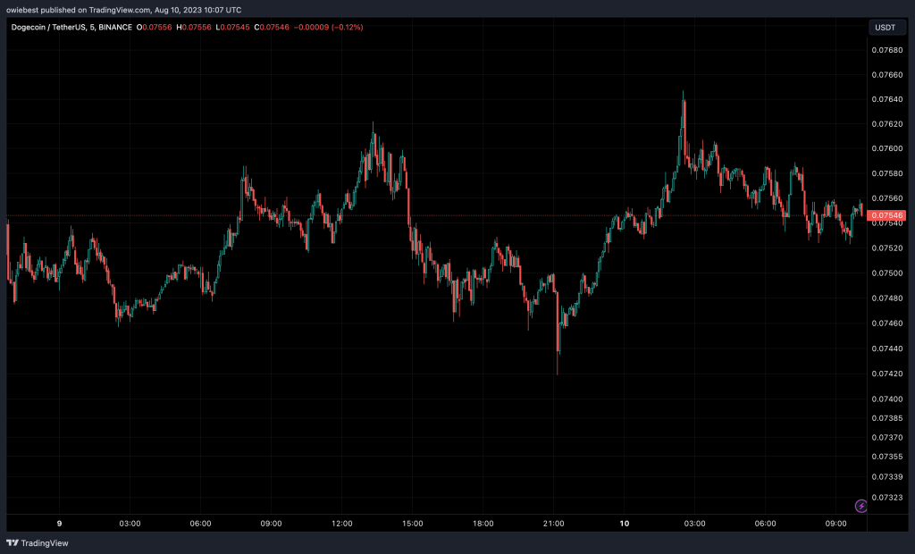 Za sada, DOGE-ova cijena je i dalje stabilna na 0,07545 dolara, bilježeći minutni gubitak od 0,06% u posljednja 24 sata. Nasuprot tome, meme kovanica održava svoje nedjeljne dobitke, porast od 3,06% u ovom vremenskom okviru.