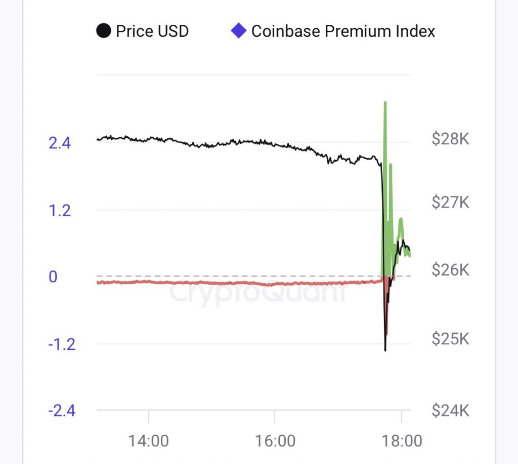 Osnivač CryptoQuant-a, Ki Young Ju, ponudio je uvid u anomaliju cijene BTC-a na Coinbase-u: „Premija cijene BTC-a na Coinbase-u porasla je za 3%. Ili je: 1. Neki kit entitet je bacio BTC na Binance ili 2. Coinbase kitovi kupuju pad.”