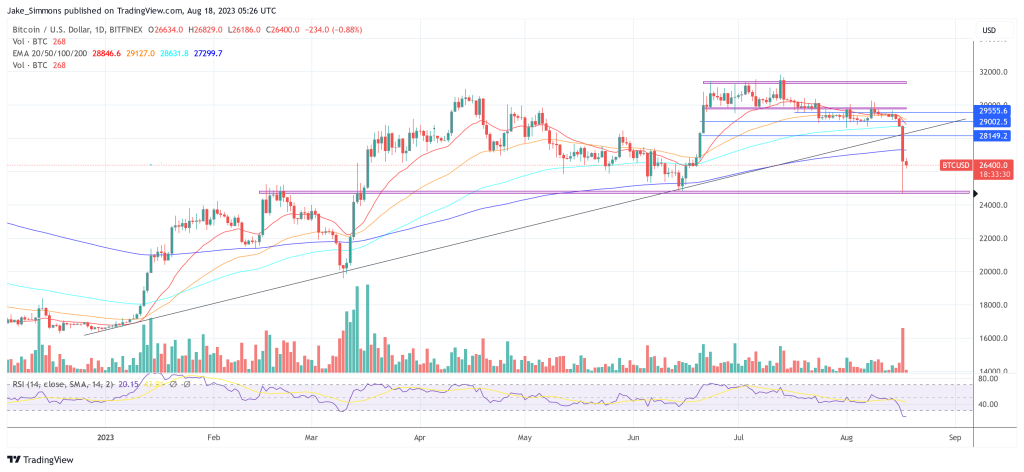 U vrijeme štampe, cijena bitkoina je iznosila 26.400 dolara i doživio je blagi oporavak. Oporavak iznad 200-dnevne EMA i u najboljem slučaju linije uzlaznog trenda na 28.400 dolara bila bi reakcija koju bikovi žele da vide.