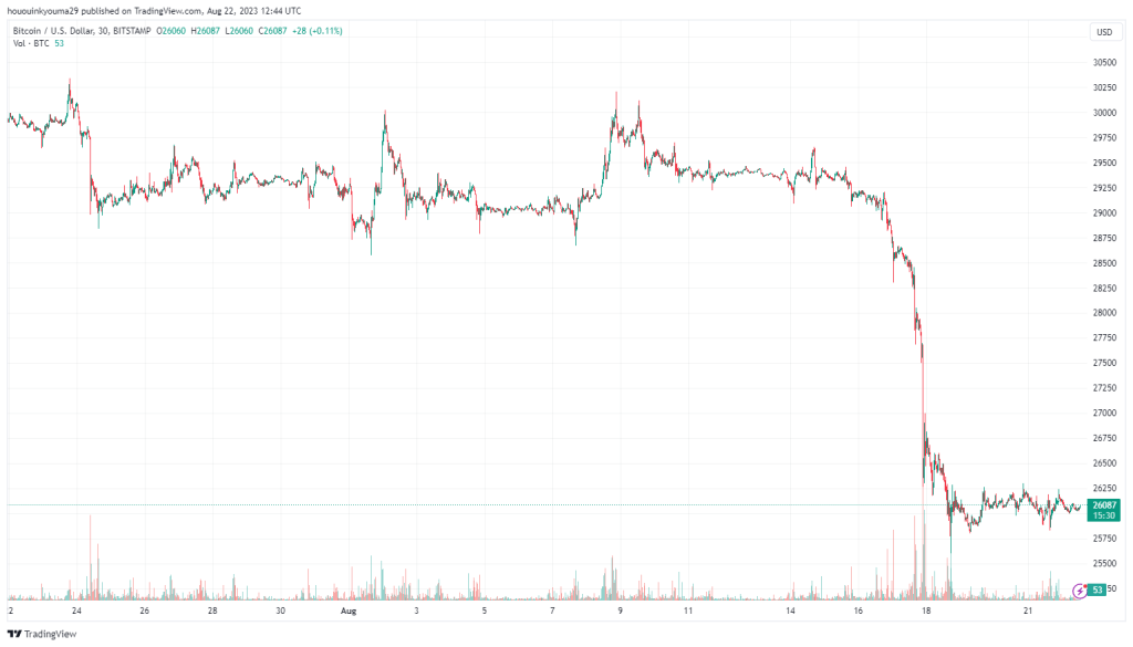 U vrijeme pisanja ovog teksta, Bitcoin se trguje oko 26.000 dolara, što je pad od 11% u prošloj sedmici.