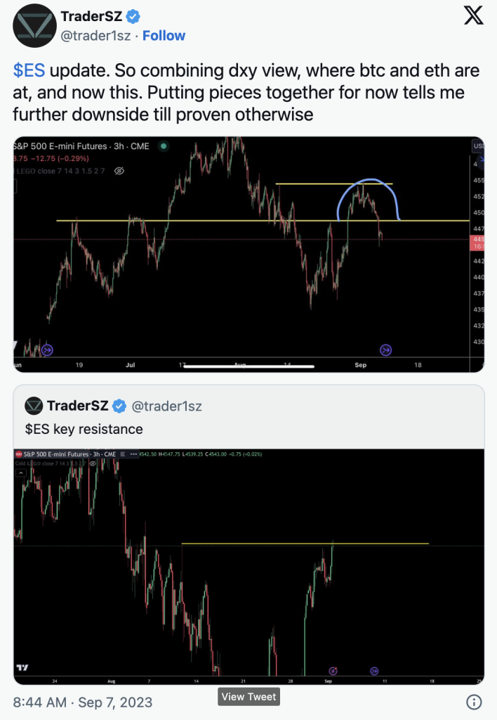 TraderSZ je nastavio tu temu, predviđajući pad američkih akcija usled jačanja DXY-a.