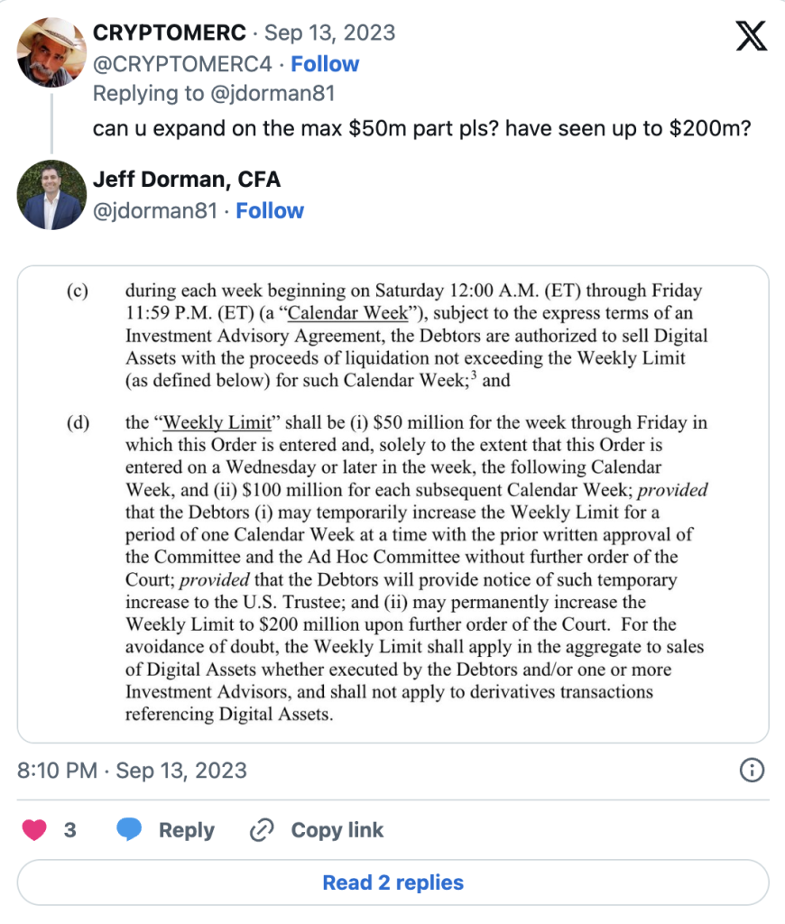Ove kriptovalute zajedno čine oko 70% ukupne tržišne kapitalizacije kriptovaluta. Dakle, njihovo isključenje iz sudskog postupka teorijski smanjuje prodajni pritisak koji bi FTX prodaja mogla izazvati, kako su mnogi strahovali.