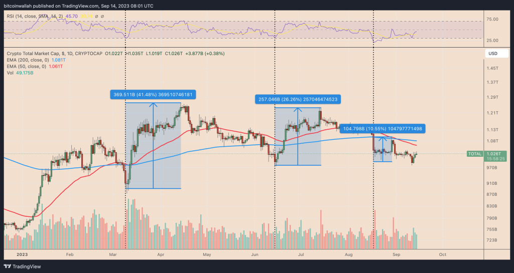 Osim toga, rast kripto tržišta u poslednjih 24 sata dio je kratkoročnog oporavka koji je počeo 11. septembra.