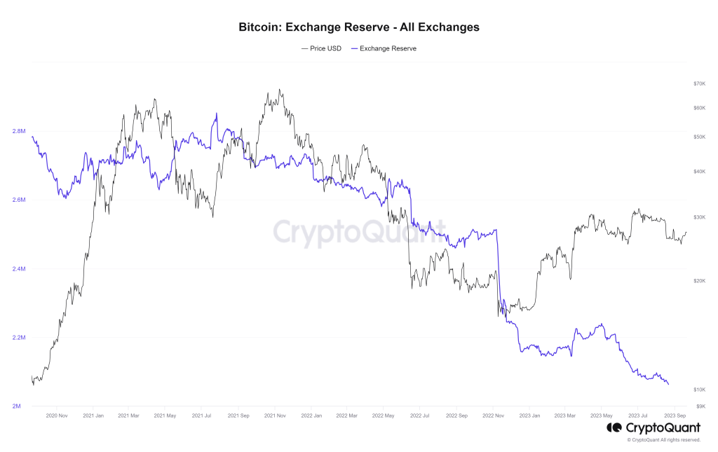 CryptoQuant grafikoni takođe odražavaju odlive Bitcoina sa berzi koji su u stalnom opadanju od jula 2021. godine, sa nešto više od 2 miliona BTC preostalih na berzama.
