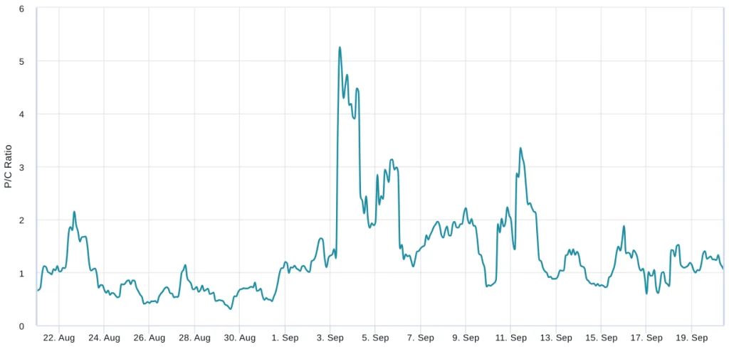 Put-to-call omjer za obim Bitcoin opcija nedavno se pomjerio sa favoriziranja put opcija na 1,50 na uravnoteženi nivo od 1,04 20. septembra, što ukazuje na smanjeno interesovanje za zaštitne putove.