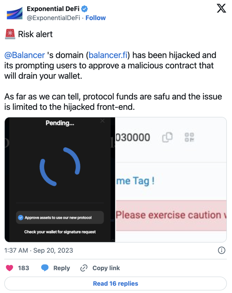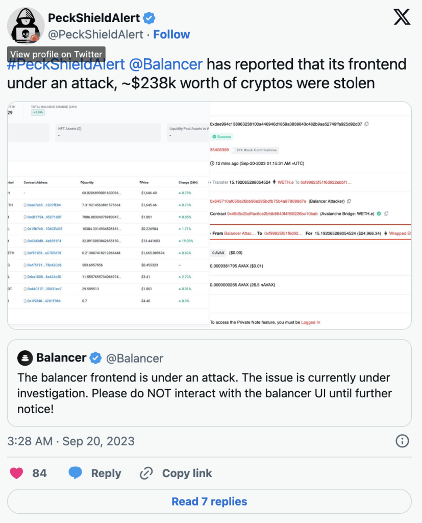 Front end Balancera DeFi protokola je napadnut, ukradeno 238.000 dolara u kriptu - Cryptoadria.com