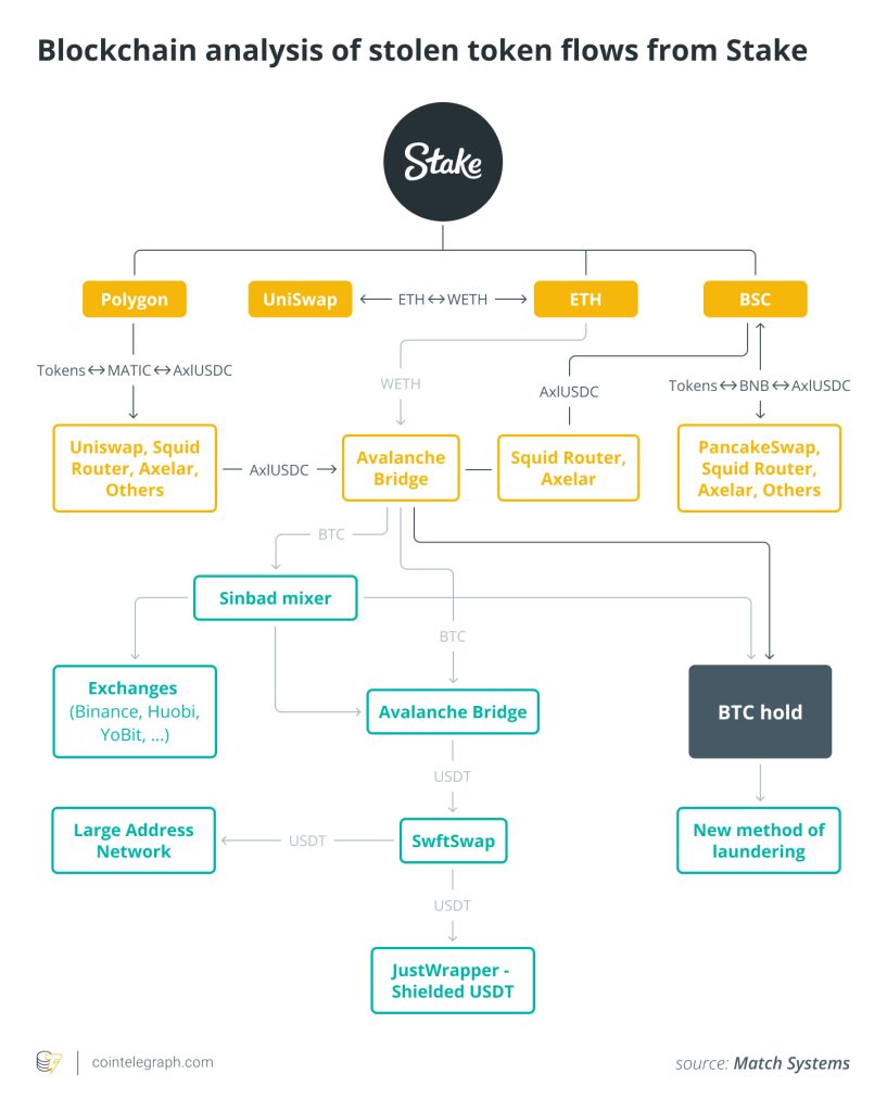 Ovo je u maloj suprotnosti sa informacijama koje je Cointelegraph dobio od Match Systems-a, što sugeriše da su počinioci CoinEx i Stake hakova imali neznatno različite identifikatore u metodologiji.