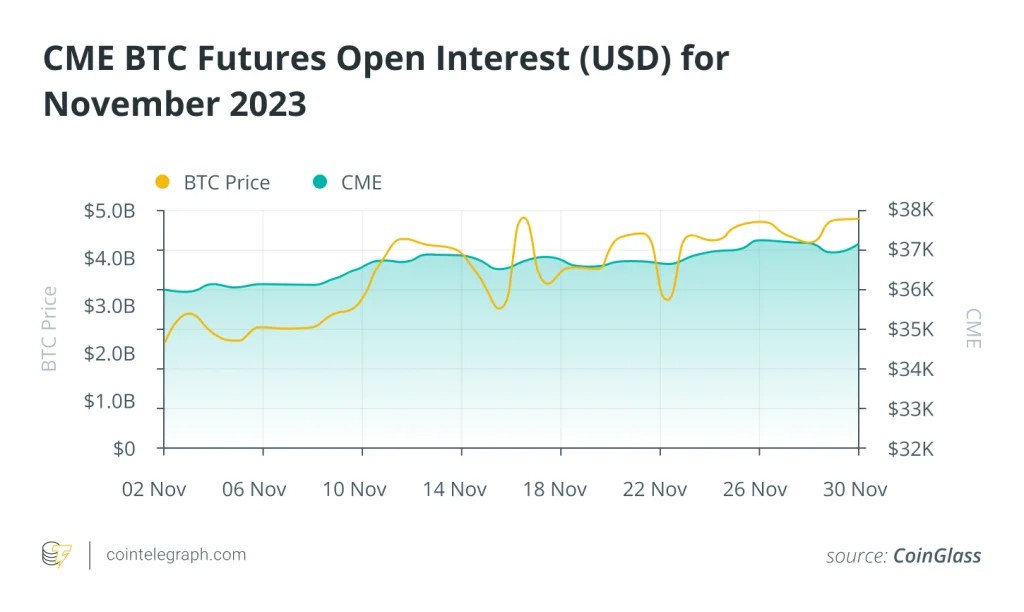 Ovaj optimizam se ogleda u rastućem institucionalnom interesovanju za berzanske proizvode vezane za Bitcoin. Dokazi o ovom rastućem interesovanju mogu se vidjeti na tržištu Bitcoin futures na Čikago merkantilnoj berzi (CME), gde je otvoreni interes porastao za više od 20% u novembru.
