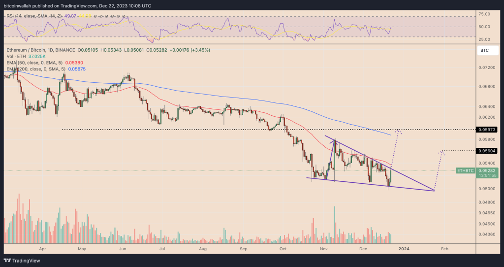 Jedan od glavnih razloga za potencijalni uspon ETH/BTC je trenutni oblik padajućeg klina.