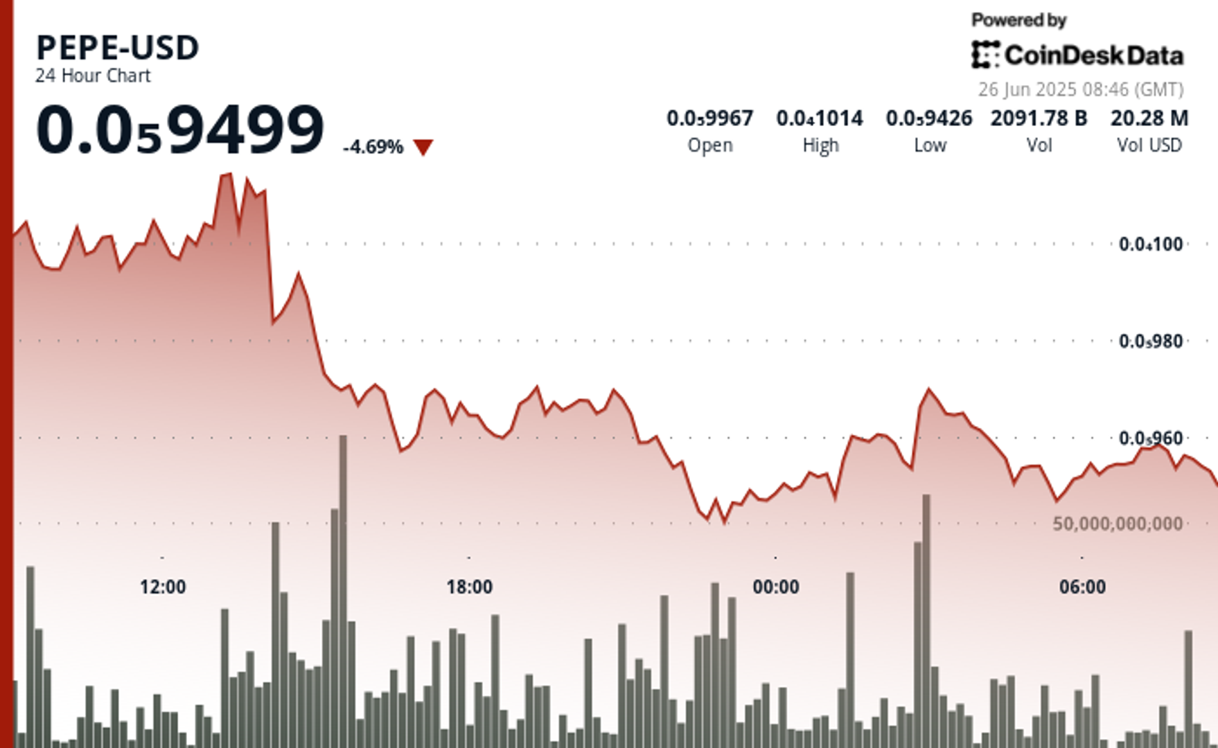 Pepe (PEPE), jedna od najistaknutijih meme kovanica, bori se da zadrži interes investitora, bilježeći pad od 4.7% u protekla 24 sata na 0.000009499 dolara, prema modelu tehničke analize CoinDesk Research-a. Ovaj oštar pad tokena predstavlja nastavak njegovog nedavnog silaznog trenda, koji je obilježen snažnom volatilnošću i značajnom intradnevnom prodajom. Nekada omiljena među maloprodajnim investitorima sa svojim viralnim zamahom, pa čak i kratkim priznanjem od Elona Muska 9. aprila, PEPE je od tada izgubio na tržišnom uticaju kako se pažnja ponovo preusmjerava na Bitcoin. Muskov kratkotrajni potez postavljanja PEPE tematske profilne slike tog dana izazvao je značajne reakcije u prostoru meme kovanica, međutim, taj entuzijazam je uglavnom splasnuo.